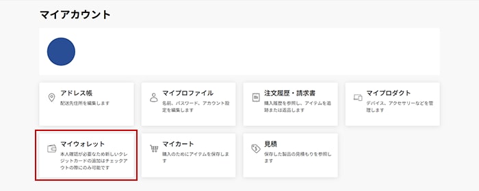 2.【マイアカウント】から【マイウォレット】を選択