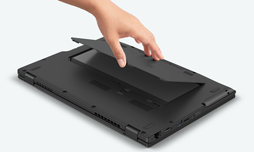 バッテリーは充放電を繰り返すと次第に消耗し、ご購入時の性能が得られなくなります。そこで、お客様ご自身で内蔵バッテリーを交換できるセルフ交換バッテリーモデルをWEB MART限定でご用意しました。工具は一切不要で、簡単に新しいバッテリー(オプション)へ交換できます。