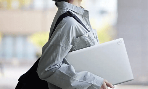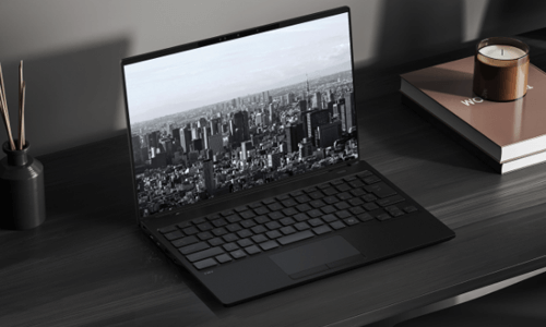 約634gという世界最軽量注1 の圧倒的な軽さ。この重さなら、いつもどこにでも気軽に持ち運ぶことができます。FMV Zeroはさらに、装置のカラーからロゴにいたるまで、全てを黒一色にまとめたミニマルで上質なデザインに仕上げています。装置の中身にも厳選されたアプリだけを搭載し、無駄のないミニマルな構成になっています。
