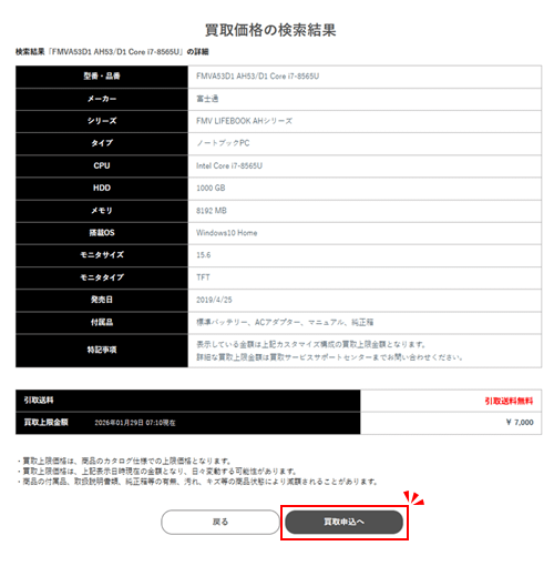 【買取申込期間】ご購入いただいたPCの納品日から30日以内