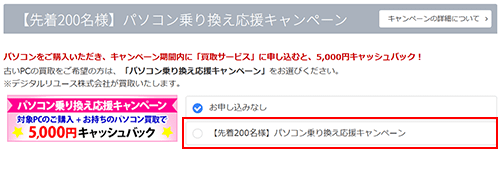 「パソコン乗り換え応援キャンペーン」をご選択ください。