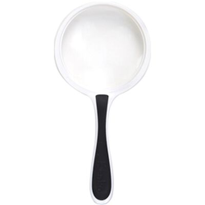 手持ちルーペ最大サイズのレンズ径100mmで 広い範囲が見えやすい 白と黒のツートンカラーで シンプルデザインの手持ちルーペ 倍率2倍/小玉3.5倍