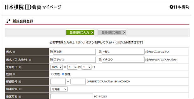 - 幽玄の間、情報会員サービスを利用いただく際に必要な、日本棋院発行のIDとなります。